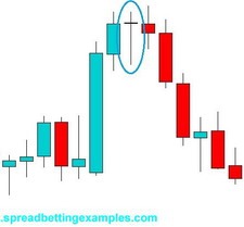 Doji candlestick pattern:A Doji is formed when a candlestick opens and closes at nearly the same level. The shadow above and below can very. The Doji can look like a cross, inverted cross or a plus sign. |